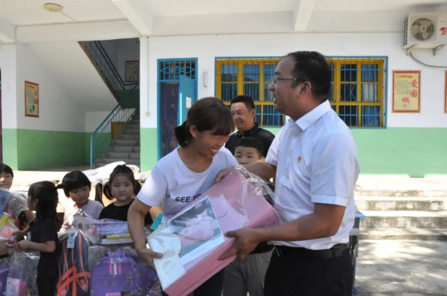 本網(wǎng)訊 9月3日,在新學(xué)期來(lái)臨之際,炎黃科技園聯(lián)合黨支部書(shū) 記、執(zhí)行總經(jīng)理?xiàng)钫軒ьI(lǐng)聯(lián)合黨支部的黨員代表到洛陽(yáng)市嵩縣大章鎮(zhèn)趙樓村小學(xué)走訪慰問(wèn),為老師和孩子們送去開(kāi)學(xué)“禮包”。